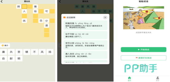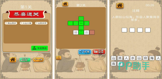 其中包含的关卡难度有很多,玩家可通过逐渐闯关的方式来挑战自我,也能积累更多丰富的知识财富,在这里顺利完成挑战之后还能够升官加爵。此外,还有很多辅助道具可帮助玩家顺利完成闯关,孩子在体验游戏的欢乐时,还能够了解到更多成语的相关知识,从各方面提升自己的文化素养。