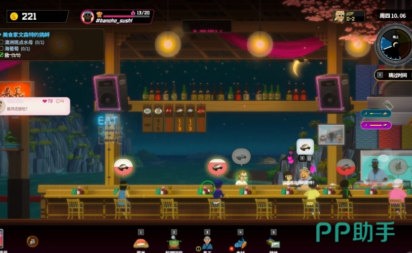 通过升级店铺和员工,实现寿司店的自动化经营,减少手动操作的时间。自动化不仅能提高效率,还能让玩家有更多时间进行其他赚钱活动,如探索和捕获鱼类。