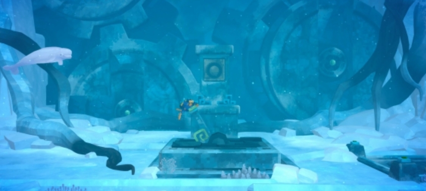 在海流洞穴的深处,玩家将面对冰河区域的守护Boss——幻影水母。幻影水母的攻击方式多种多样,玩家必须掌握它的弱点才能将其击败。幻影水母在吹气时眼睛会变红,此时是攻击其眼睛的最佳时机,如果幻影水母没有在吹气,玩家则需要灵活躲避它的攻击。成功击败幻影水母后,玩家将能够进入海流洞穴的第二个房间,激活机关前往冰河区域。