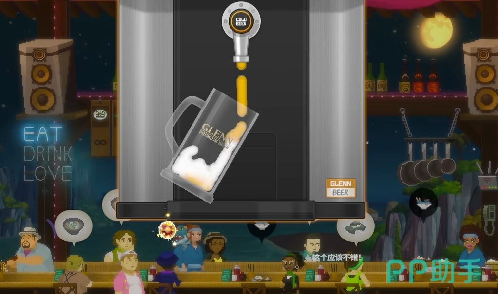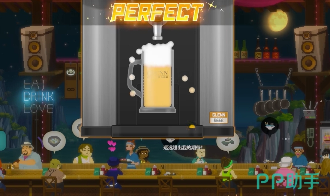 因此,大家在遇到倒酒的需求时,可先将啤酒灌至杯子的四分之一,待泡沫在杯中流动的动画走完后,再继续接着倒酒,此时就很好掌握倒啤酒的量了,也能比较轻松地达成让泡沫占比20%的要求,基本上用这个方法能让玩家的倒酒次次达到完美,并获得顾客的满意。