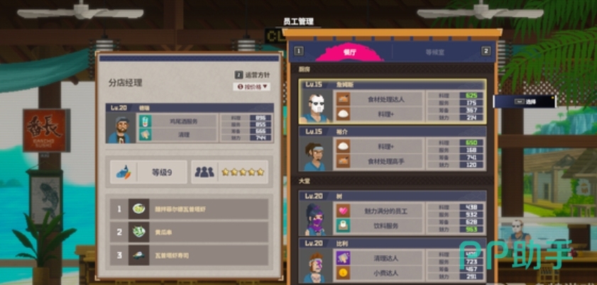 初期可以通过线上广告招聘员工,合理安排员工职责,推荐寻找大酱和盐等调料,中后期制作高利润菜谱。推荐员工包括德瑞、詹姆斯、米仓等,优秀的员工不仅能提升店铺的运营效率,还能在关键时刻提供帮助。