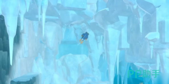 从冰河区域向右上方前进,玩家将进入冰川洞窟,冰川洞窟是一个充满未知的区域,内部结构复杂,道路蜿蜒曲折。玩家需要小心前行,避免迷失方向。洞窟中的环境设计极具沉浸感,冰柱、冰墙和微弱的光线共同营造出一种神秘而紧张的氛围。