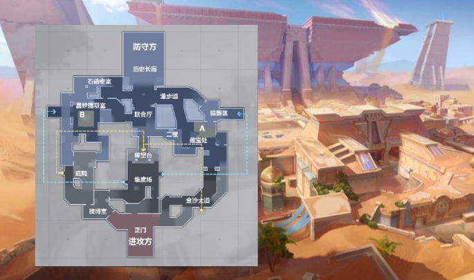 科斯迷特是一张以沙漠为主题的小型地图,拥有两个包点和多个相连的小区域。防守方可以通过联合厅快速回防,这使得他们在转点时具有明显的优势。进攻方则需要通过联合厅进行转点,但这一过程中容易受到防守方的打击。因此,进攻方需要制定周密的计划,合理分配资源,才能突破防守方的防线。