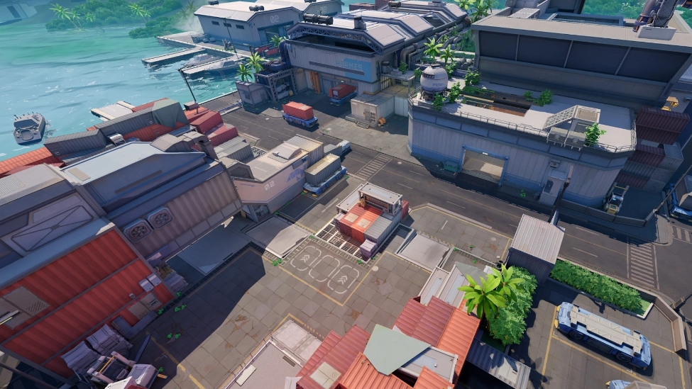 港口是一张宽度较小的地图,进攻方基本直走即可推进,然而,玩家需要特别注意中路的大面积水域,以及防守方的回防时机。推荐角色包括颜料妹,防守方的熊妹和大狙,进攻方的大狙和拉薇。战斗节奏较为紧凑,玩家需要充分利用水域和建筑物的遮挡,制定合理的进攻和防守策略。