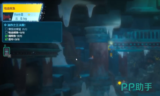 除了常规的食材需要使用鱿鱼之外,在游戏里还会有一个油炸厨艺大赛,在这个大赛上,吸血鱿鱼是一种必备的食材,假如玩家在这个时候已经解锁了冰河冰川,那就可以尝试携带上足够保暖的设备和氧气进入到水下,搜索吸血鱿鱼的踪迹,然后在这里利用捕鱼网或者是消音飞镖捕捉鱿鱼,在这个地带还有一些其他的鱼类,如果玩家的氧气和保暖设施支持的话,就可以在这里多去探索。