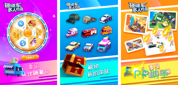 想和好友开启不一样的疯狂体验?快进入《碰碰车多人对战》,6人在线,毫不卡帧,而且在游戏对于硬件的要求并不高。社区系统的升级,让你在线快速约到好友,随时随地开玩,各种碰碰车皮肤造型,爆笑的碰撞特效,高拟真度的音效,让你完成每一次的激情碰撞,完成了画质清晰度的提升,视觉体验感更棒。