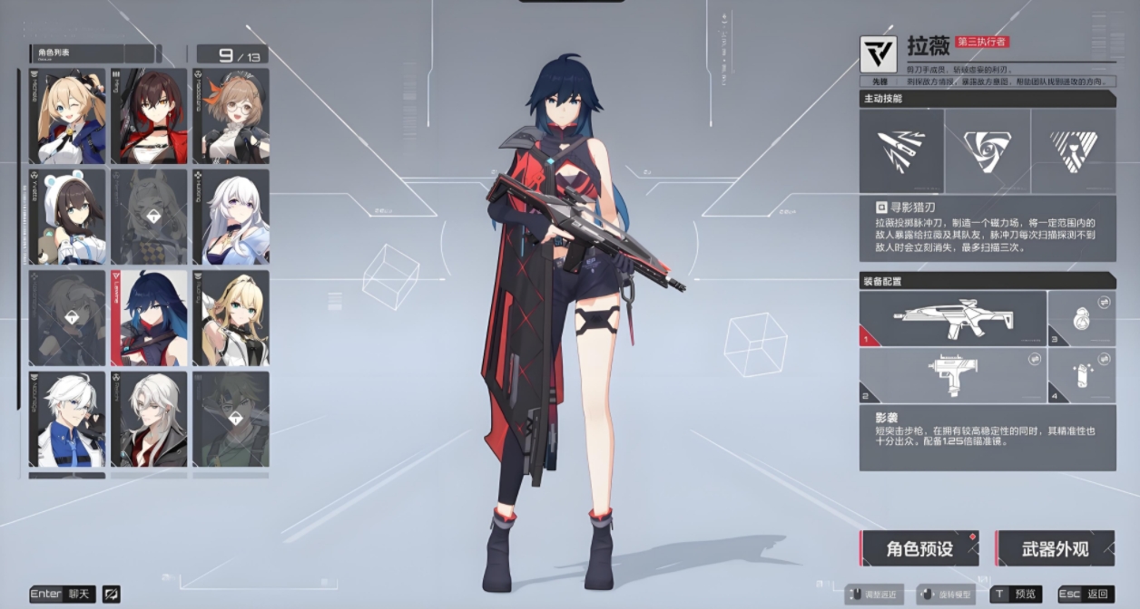 主武器影袭,是短突击步枪型,拥有较高的稳定性与精准性,配备1.25x倍瞄准镜。它的原型是由美国AEDEC研发的轻型突击步枪XM8。XM8在设计上注重轻便性和稳定性,而影袭在继承这些优点的同时,也在游戏中展现出了独特的魅力。