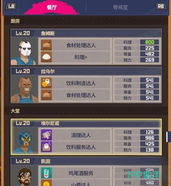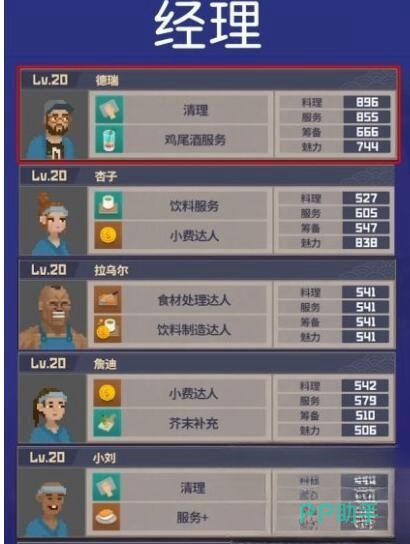 经理的选择决定了餐厅的整体运营效率,德瑞无疑是最理想的人选。他的料理能力极为出色,特别是在料理值超过500后,能够稳定处理9级食材,这使得餐厅在制作高级料理时更加从容。德瑞的存在确保了高级料理的稳定供应,让餐厅能够吸引更多高端顾客,提高整体收益。厨房是餐厅的核心,决定了出餐速度与菜品质量。