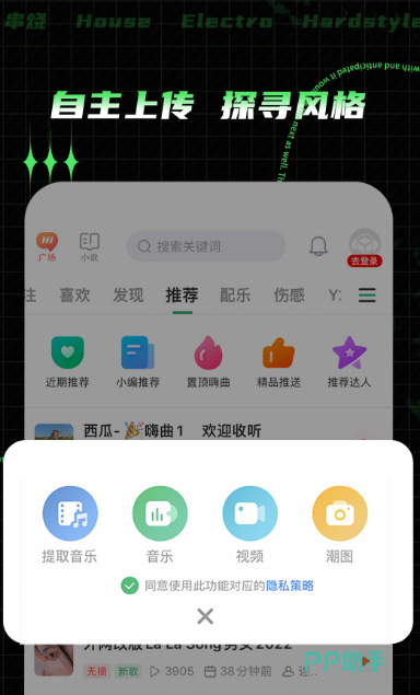 电音音乐app,经常都在短视频平台中听到的热门歌曲几乎都来自于这里,全球潮流音乐,表演音乐背景为你打造相当魔幻的短视频配乐。作为当前相当完善,功能全部垂直的app可在线制作手机铃声也能制作dj歌曲全面发布。为所有歌曲爱好者精心准备网红喊麦高品质广场舞歌曲,每首都可调节3d环绕音乐。