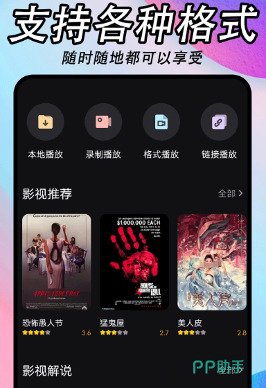 全面支持视频搜索,多种格式播放,无论你喜欢好莱坞大制作,还是比较小众的电影都能轻松满足,多格式全面支持,无论视频与音频都能在这里识别,支持投屏,直接投放到大屏幕上,全家人共同畅享。万能播放器流畅高清,无需转码,更是文件管理应用多种视频重命名或者加密完成批量操作。