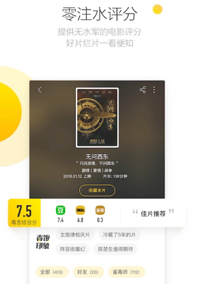 千万影迷纷纷推荐的app已经入选众多奖项目前超过500位,当红影评人分享毒辣评价,观看电影之前详细探索具体的影评资讯,直击当前比较热门的影视热点,作为片荒必备app有上万张由知名自身影评人,所打造的经典好影片榜单,比如华语经典、冷门佳片等等,总能寻找到你喜欢的。全年畅享300多场免费点映模式能够与明星见面,也有机会参与电影周边。