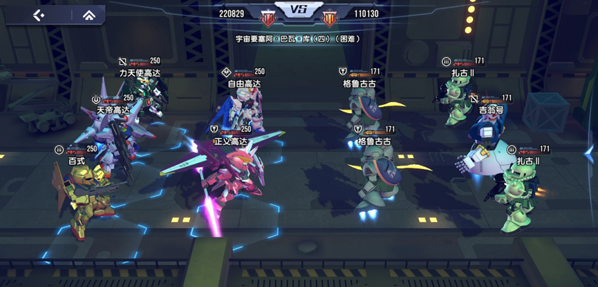 同时也可以选择,以天帝高达为中心,在作战的过程中,在搭配上正义高达以及自由高达和力天使高达,百式高达,这个组合可以叠加燃烧状态,持续性的造成高额的伤害,在使用天使高达的角色时,大家可以利用他的主动技能来选中四名敌人,施展燃烧的效果,之后再利用其他机体的燃烧效果,增加其特性,特别适合在长线战斗中来使用。