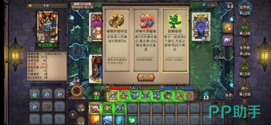 根据敌人的特点选择合适的阵容,前期要注意准备药品以快速回血,后期则需通过强化装备和符文来提升角色的实力。在重要战斗之前,遇到药水商人时要尽量购买药水,切勿吝啬。此外,游戏中有许多神器和魔法书可提供技能和增益效果,务必要选择与自己流派相匹配的神器和技能。