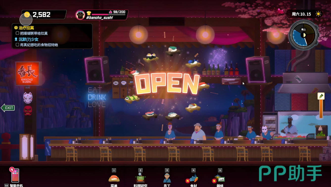 其次我们进入游戏后期时,原材料也会变得丰富起来,我们可以种植大蒜、豆角等蔬菜,我们可以在菜单中添加醋虾,虾的繁殖很快,可以稳定提供食材,小飞象章鱼烧和酱螃蟹也是顾客们青睐的菜品,另外在后期我们还会不定时出现一些节日,我们要准备节日菜单,如龙虾节的龙虾拼盘,金枪鱼节的金枪鱼盖饭等等。
