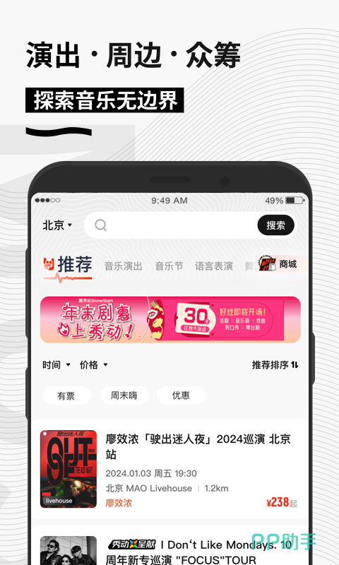 在这么多买票的 app 里,它绝对是性价比最高的。在一些火热的大平台上买不到的票在这里统统都能买到,它的购票方式很特别,平台直接把一手演出票给到大家。这样一来,大部分的演出票都有折扣,大家能真真切切享受到实惠。有一定的票务保障能力,能满足不少粉丝的需求。