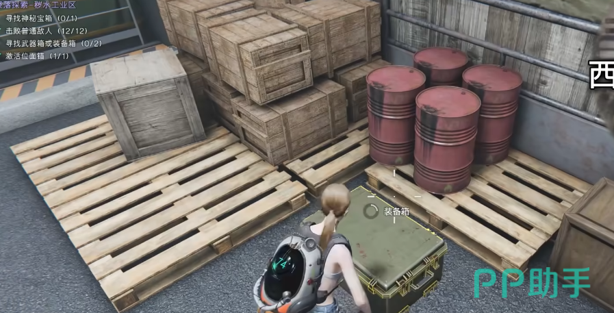 武器箱子也拿到了,下面就该去拿神秘宝箱 ,神秘宝箱并没有在工厂上面,而是在地下的地位,玩家返回厂房一楼找到前往地下的电梯,进入地下以后,玩家只要一直向东侧移动就能找到神秘宝箱了。