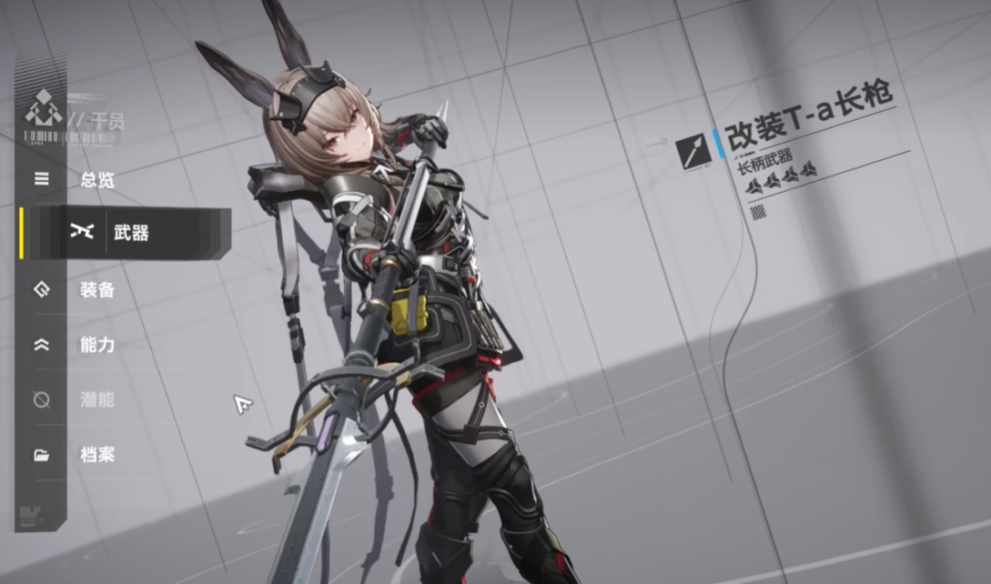 这是一个女性干员,是武装信使,经常在开拓区以及文明环带之间往来。体力以及物理强度都比较高,战场机动性优秀,使用的是长柄武器,力量跟速度兼备。