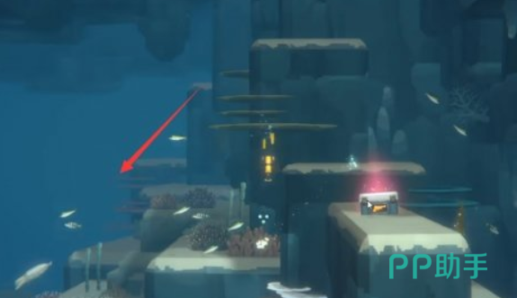除了快递之外,这里还有一只巨型的章鱼,章鱼会把身边所有的物品当成是自己的,想要得到这个快递箱,玩家就需要继续向下探索,在下面的区域中会出现宝箱,打开这个宝箱之后能获得气动切割机。
