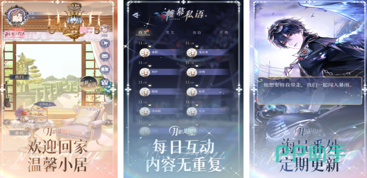 《月影别墅》是以女性视角为主的恋爱模拟+冒险解谜类手游。游戏设定比较新颖,是一个充满了吸血鬼的世界,而你将要与4位男主互动,提升好感度的同时解锁更多剧情以及语音包。除了恋爱模式外,剧情还融入了相当多的冒险元素,你可以与4位男主们共同在别墅中探索,找到事件的真相。