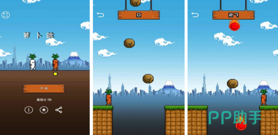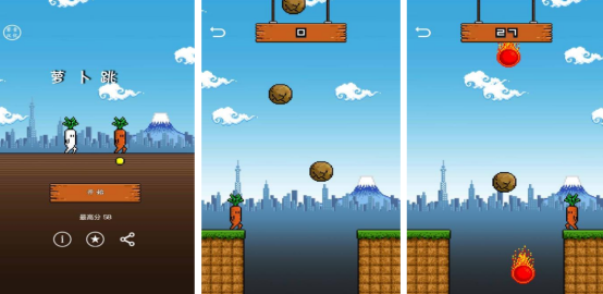 采用特别简单的方式进行操作,玩家只要点击屏幕,就能够控制其中的白萝卜进行条约。当白萝卜跳完之后,就需要点击红萝卜进行跳跃,采用的是交替跳跃的方式。带来了无尽的挑战性,但是在此过程中也会有很多障碍物和陷阱,当遇到障碍物时,就要利用极好的反应能力快速躲避来挑战自我。