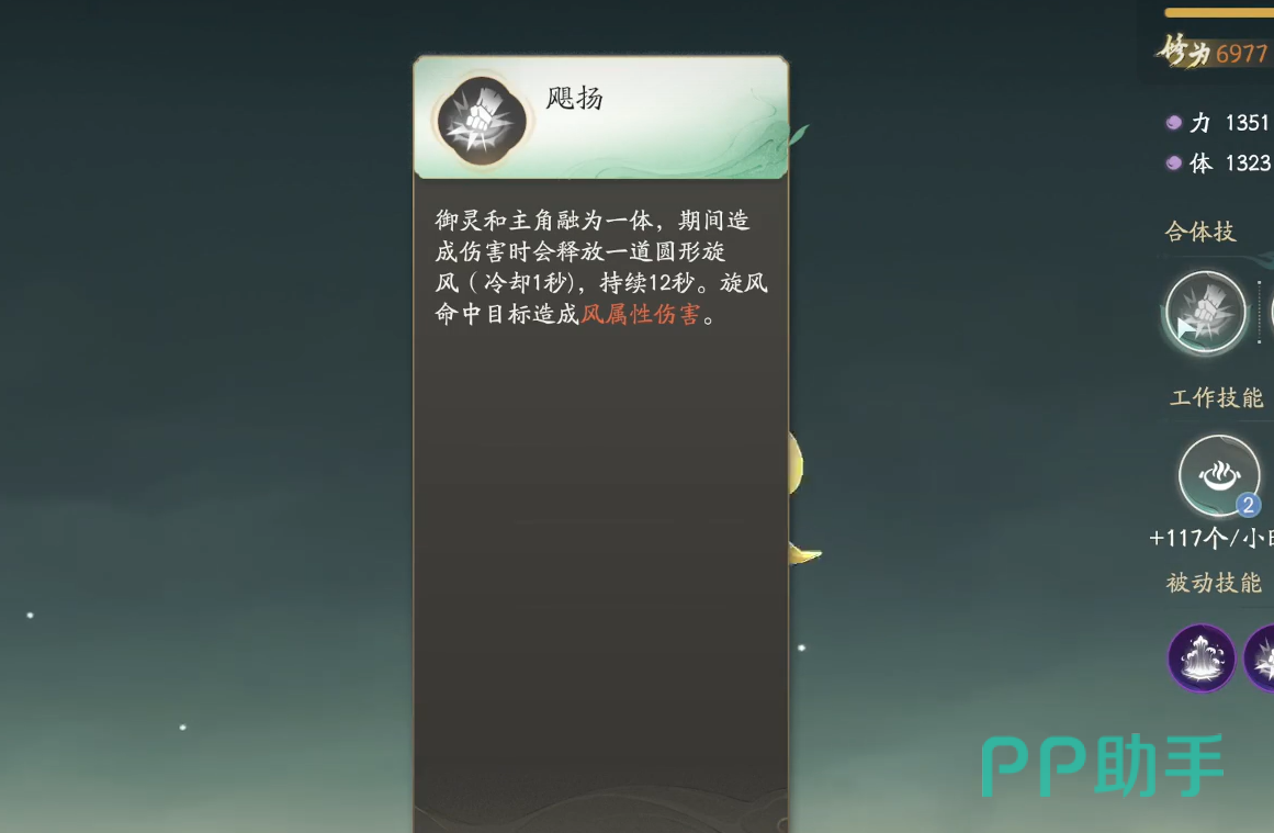 当玩家装备了风灵之后可以解锁全新的合体技能。在玩家使用合体技能后将会召唤出一道旋风对附近的敌人造成非常高的aoe风系伤害,当玩家使用雷系技能后还可以造成连锁反应,在清理杂兵的时候非常好用。
