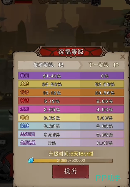 在游戏前期,玩家就应重视祝福等级的提升,可通过合理规划资源,如在开了挖矿功能后,第一时间勾选挖3级以上加速券,黑市优先购买加速券和锤子,商店也以加速券为主,将节省下来的金币用于购买奥术结晶,快速提升祝福等级,有玩家分享经验称,优先提升祝福等级,能让游戏前期体验更加顺畅,快速拉开与其他玩家的差距。