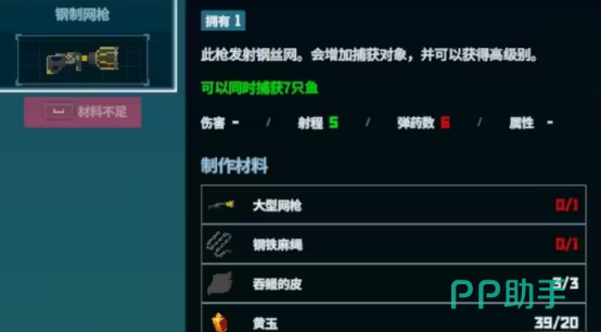 首先小编要介绍的第1种方式,那就是通过收集材料的方式到商店中购买,因为在制作钢制网枪时,需要三张吞鳗的皮,这种材料相对来说比较稀缺。因此玩家要在偌大的海洋当中率先捕捉吞鳗,完成这项任务之后,就能收集大量的材料,也可利用这些材料到商店当中进行购买。