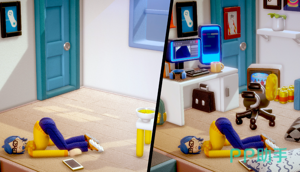 进入游戏后我们需要操控主角,以笨拙或者缓慢的蠕动方式积极完成各类任务。例如抓取物品或者开关灯以及爬行,另外房间中的各种互动场景都可以由玩家自己布置。物品的摆放位置以及风格,这样才能够打造更加整洁的环境。