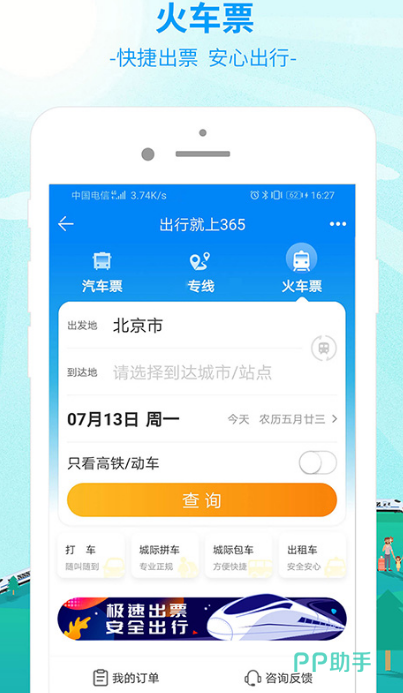 365让你出行更便捷,包含多种主要功能,比如城市拼车包车、专线订购、汽车火车高铁票订购。包含全国3000多个客运站可在线查询,随时随地想购就购,活动轮番上线,为你提供超低折扣,享受低价优惠。火车票在线购买,实时查询车次信息。目前又推送出全新景区板块提供超级实惠的景区门票预订服务,自动推荐热门景点。