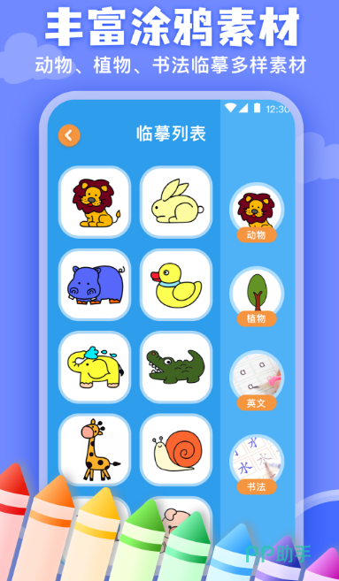 专为涂鸦爱好者所推送,小朋友大概2~3岁时就会在书本以及墙上乱涂乱画,面对孩子的种种做法,家长总会无比崩溃。让所有小宝宝抒发个人创作力,有超级齐全的色盘随意调节颜色,导入设备中的照片完成临摹绘画也可当做记事本来使用。另外也提供丰富的字帖,不仅是创作工具,更是学习工具。