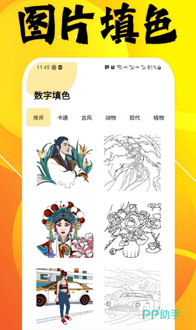 超多画笔让你无限创作,多种模式随心记录灵感,从而完成云端创作。经过多次更新与升级,使用时极其流畅,有适合儿童的颜色,根据实际喜好颜色搭配完成填色。可填色的图片有多种类型,包含卡通、古代、植物、现代等,完成之后直接保存到本地进行作品管理,不同类型工具任意选择。