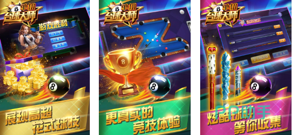 单机台球大师是个不联网也能玩的三维画面台球闯关作品,物理引擎逼真可带来超写实打球感觉,台球的碰撞音效与3D贴图真实性都不错,开仑台球、中式8球等有意思的单机模式很好玩,技术高超的小伙伴也可轻松做到一杆清台,一系列酷炫精美的球杆也能提供极为舒适的手感,台球爱好者不妨在这款3D桌球神作中挑战。