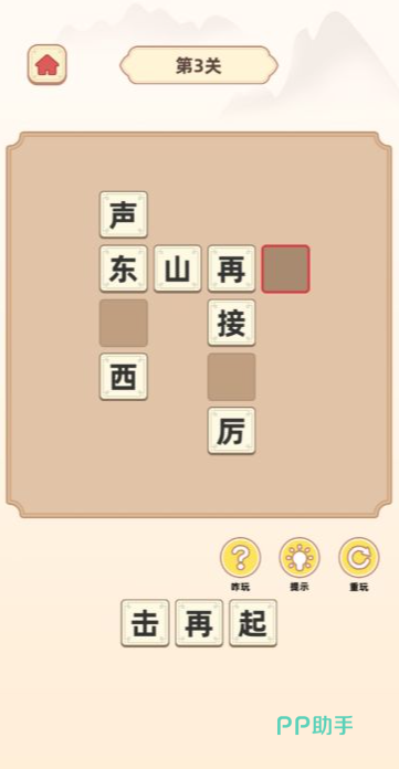 在这款游戏中,若玩家想要在游戏中顺利通关,就必须在每次挑战时根据给出的提示精准地填入正确的词语,每当成功通关都会有悦耳的音乐响起,作为对玩家的嘉奖还能收获相应的金币奖励。这款游戏老少皆宜,即使是学龄期的儿童也能通过它锻炼智力,测试自己对词汇的掌握程度,其益智性质,让它在众多游戏中独树一帜。