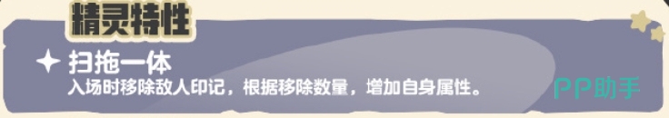 捕尘长绒的种族值为:生命100,速度120,物攻20,物防15,魔攻20,魔防25,在战斗中具有较高的生存能力和速度优势。特性是拖扫一体,入场时移除敌人印记,每移除一层,自身的攻防属性会增加,在面对带有印记的敌人时,能够迅速提升自身的战斗力,成为战场上的强力辅助。