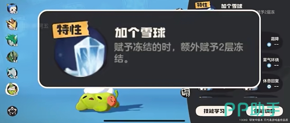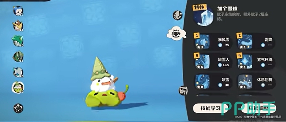 在技能方面,脆筒甜甜拥有多种攻击手段,首先是霜降,能够赋予敌方2层冻结效果,配合特性可以快速降低对手的生命值。其次其次是暴风雪,能造成物理伤害,也能赋予敌方1层冻结效果,进一步扩大冻结优势。此外,使用堆雪人这个魔法攻击技能时,如果对手处于冻结状态,威力会增加60点,并且能够将冻结效果加倍,非常适合在对手已经被冻住的情况下使用。最后,水弹枪作为常规魔攻输出技能,提供了稳定的魔法伤害,确保伤害的连贯性。