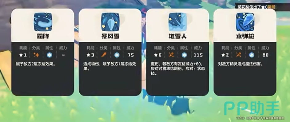 在战斗中,脆筒甜甜倾向于魔法攻击输出,建议玩家在首发时使用霜降技能,给对手造成下马威,使其陷入被动。随后,可以利用暴风雪和水弹枪来补充伤害和保持冻结状态。当对手已被施加冻结状态时,使用堆雪人技能可以打出高额伤害,迅速结束战斗。