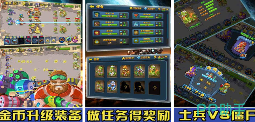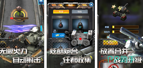 末日时代大部分人类都感染丧尸病毒,全世界都陷入危机中。玩家作为人类幸存者的指挥官,必须建立坚固的基地来防守僵尸的入侵。游戏采用竖屏闯关模式,每关中可以击破不同的宝箱来获得全新能力,升级火力、招募士兵、强化防御。在消灭海量的丧尸群后还会碰到强大的僵尸王,必须在僵尸们到达安全线之前全部击杀。游戏的节奏较快,每关中都有新的任务挑战,极致的爽快战斗快感让人上头。