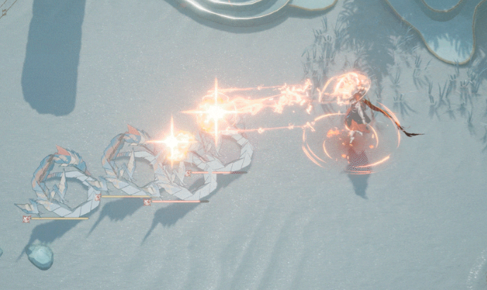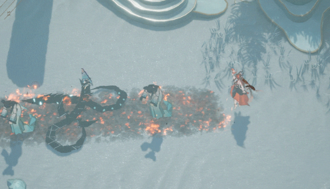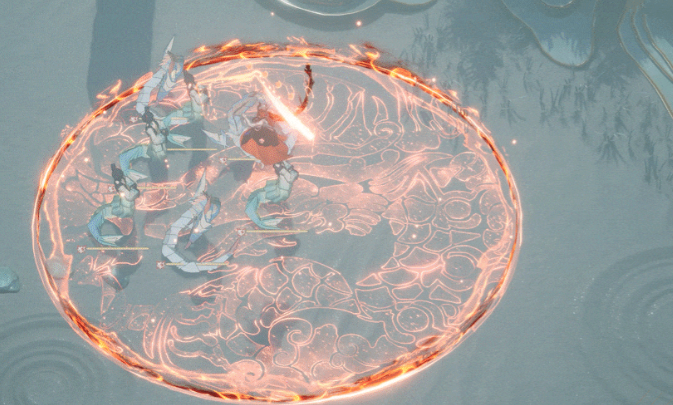 在招式释放后龙和还会进入到“海崇”状态,状态存在期间,能触发自动技的增益效果,且暴击率提升,龙和每进行数次普攻,还会以一个命中敌人为中心造成范围伤害,且两侧生成2把龙剑来攻击该目标,这个效果一旦触发,普攻每额外命中1位敌人,就可以扩大炎属性伤害范围。