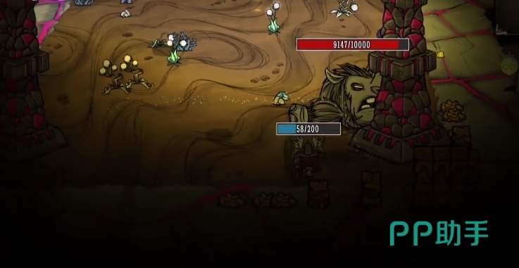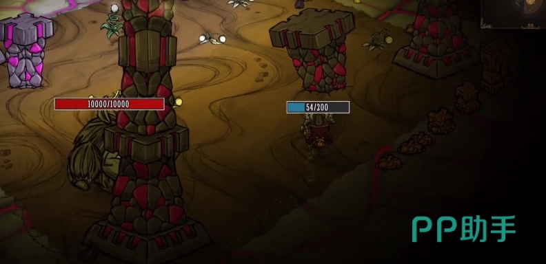 同时利用地图中的障碍物来卡视野和移动也是不错的选择,当犀牛撞到小柱子时会撞碎它们,掉落少量石头,并眩晕一段时间,玩家可考虑站在柱子后面或侧面,等待犀牛攻击被柱子挡住后,在去进行反击,不过得注意不要站在正面,避免被直接冲撞到。