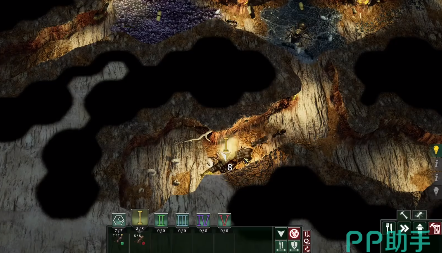 《地下蚁国》操作方式独特,你无法简单点击单位下达指令,而是要通过信息素指挥蚁群,极大提升了游戏策略性与趣味性。有故事驱动的主线战役,围绕神秘的窃贼林蚁展开,讲述实验室里的邪恶阴谋。主线中还有纪录片风格的关卡,探索蚂蚁在自然生物群落中的特性。完成关卡可赚取资源,用于升级和进化窃贼林蚁,帮助它们在残酷实验中存活。