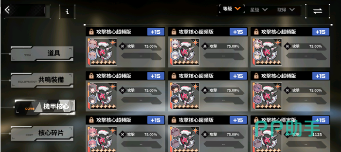 第三就是装备,能给角色的属性加成,可使用钻石盾币等获取,每个角色都有三件专属装备,凑齐指定装备后,能将技能提高一个等级。最后就是核心,该工呢跟你很重要,能给角色带来大量的属性加成效果。