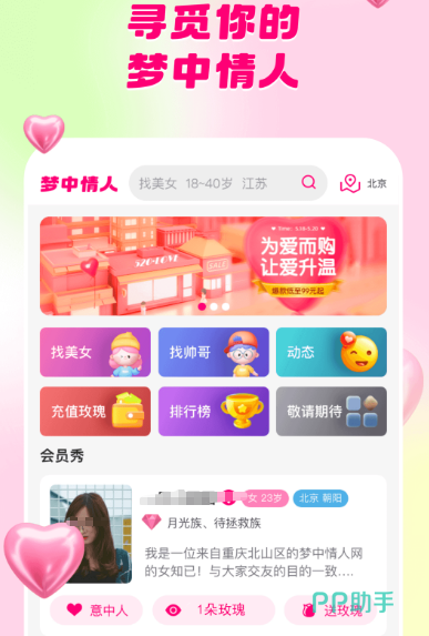 寻找到属于你的梦中情人,高品质同城免交友app,单身男女资源相当丰富,精准定位之后,根据你的实践喜好推送出适合的好友,可线上聊天,线下约会。随时随地与附近的异性发起聊天,查看高质量单身人士,与对方无限畅聊,如果互相有好感,那么可以交换联系方式,更加了解彼此。