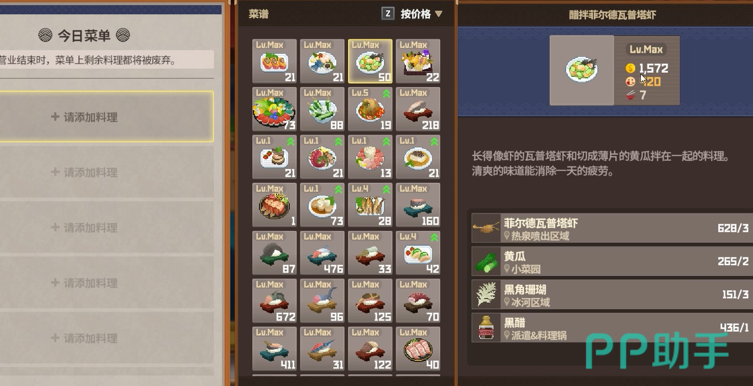 以上就是关于游戏中最贵的三道料理介绍的全部内容了,通过合理规划食材获取与菜谱升级,这三道料理可成为后期盈利的核心菜品,尤其在派对期间收益翻倍时效果显著,因此感兴趣的玩家们抓紧去游戏中体验一下吧!