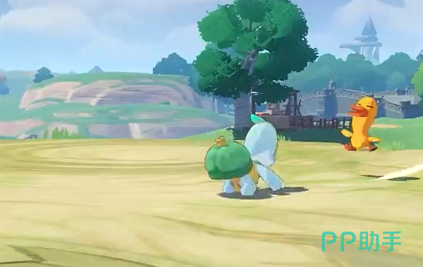 在探索时看到宠物,可以点击右下角这里有一个扔球的按钮,长按瞄准想要的丢过去,就会触发战斗场景,将野外的宠物血量压低后捕捉成功概率会更高,不过战斗会收到天气因素的影响,比方说如果在野外遇到下雨,火系的就会有抵触情绪,而水系则是战斗力翻倍,建议根据环境上场战斗效果会更好,每一个捕捉来的宠物除了战斗外,还可以当坐骑,飞行系的类似于滑翔,水系的则能在海中遨游,建议在野外时可以多多捕捉。