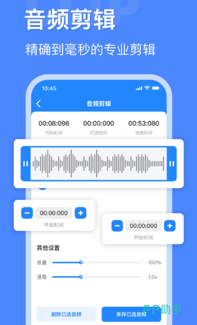 音频混合、合并、提取所有工作都能在这款应用中全部搞定,高清录音随心所欲,各类音频随意录取。支持当前主流格式转换,比如mp3。