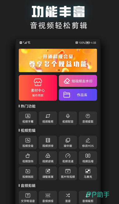 音频视频所有制作模式都能在这里完成,海量特效火爆视频一键去除水印,各类型音频自由剪切制作,可提取意中的内容。