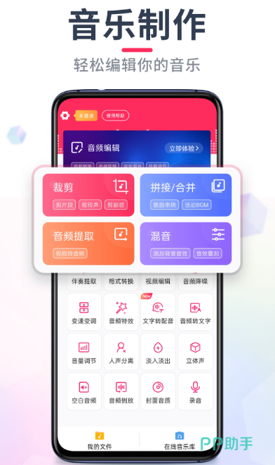 功能强大的音频处理app,支持格式转换,合并剪裁,等不同的特色内容,新手也能轻松完成,人性化设计每次提取音频时都无比简单,支持多种格式转换,比如mp3、m4a等。