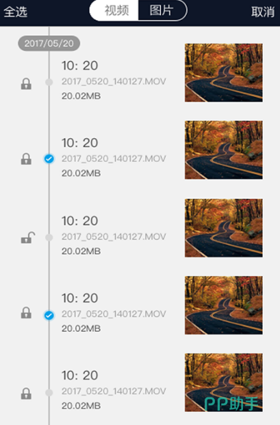 此应用给你带来全新的体验,支持前后双记录,使用方法同样也非常简单,只要将手机与智能车辆相连接,就能快速完成手机上预览,锁定视频的同时对记录仪进行变更。外出探险,自驾旅游,面对特别优美的风景,自己也无法正常记录,更没有太多时间利用手机来拍摄,不用担心此应用满足你的种种需求。