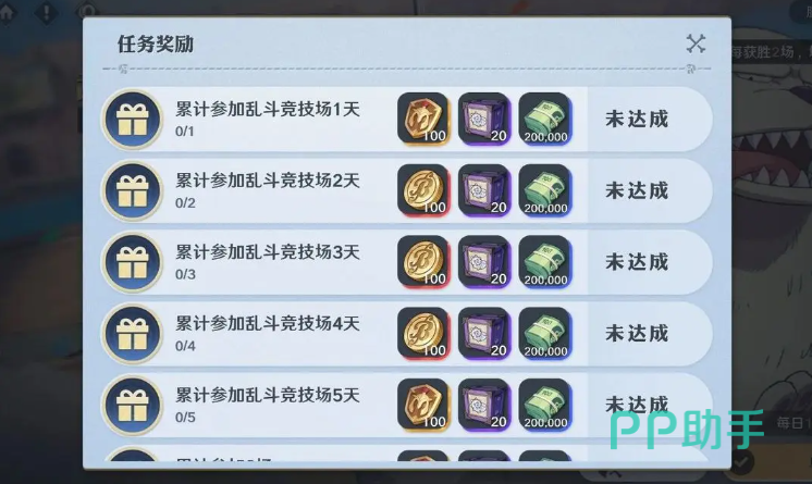 参与乱斗竞技场不仅可以享受酣畅淋漓的战斗,更是有机会获得竞技币、金币等一系列的奖励,并且可以推进竞技任务,每天至少获得2场胜利,就可以加1个竞技任务本周胜场。