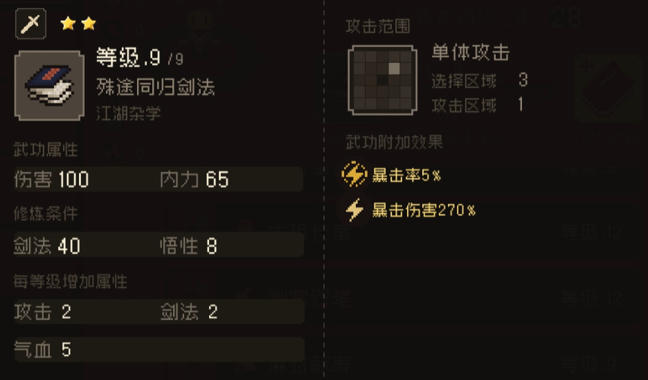 一苇渡江剑法适合独行者,伤害翻倍,可在道德低于4时拜师北孤获得;